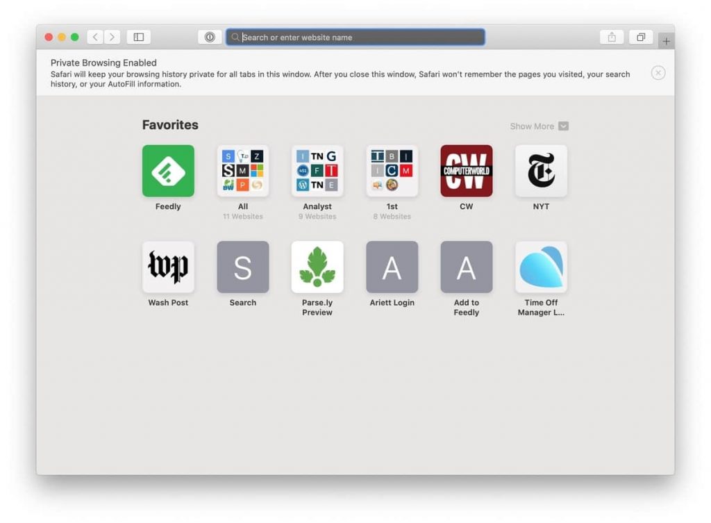 O Safari marca cada janela privada escurecendo a barra de endereço. Também emite um lembrete do que faz – ou com mais precisão – o que não faz. “O Safari manterá seu histórico de navegação privado em todas as guias desta janela. Depois de fechar esta janela, o Safari não lembrará as páginas visitadas, o histórico de pesquisa ou as informações de preenchimento automático”, diz a parte superior da página. O aviso é mais conciso do que os de outros navegadores e omite os avisos sobre atividades online ainda visíveis.