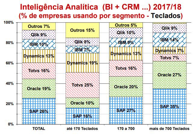 A inteligência analítica é responsável por boa parte do lucro dos fabricantes SAP, Oracle, Totvs, Microsoft, IBM e Qlik, que, nesta ordem, são líderes com 93% do mercado.